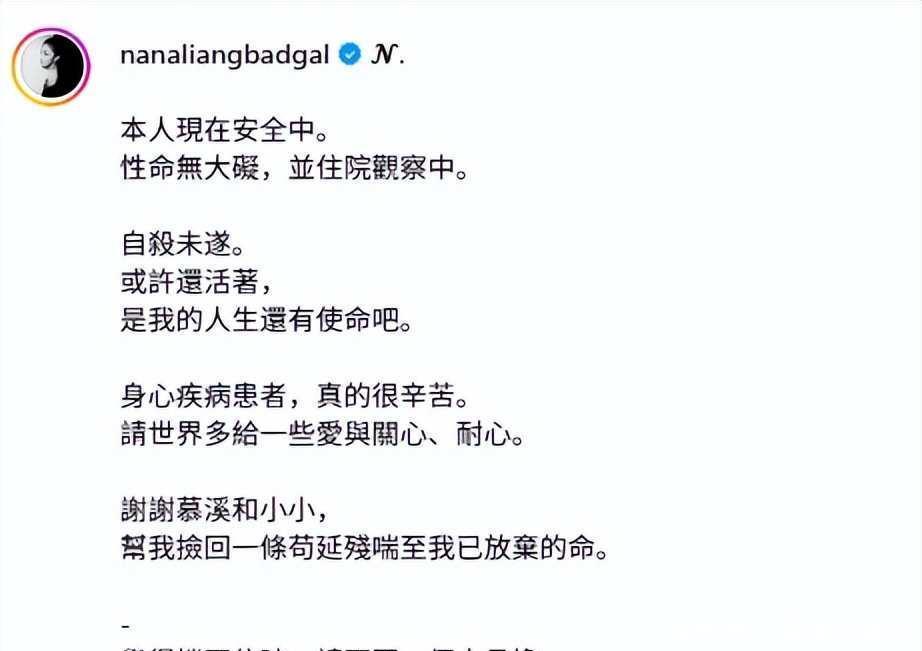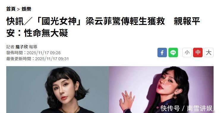 11月17号早上,梁云菲发了条动态,说自己没死成,现在躺在医院里,她贴了张手腕的照片,上面的血痕挺清楚,她特别感谢两位朋友,说那天真的不想活了,是这两个人把她拉回来,之前网上早就传她出事,但大家都没敢信,直到她自己出来说话。