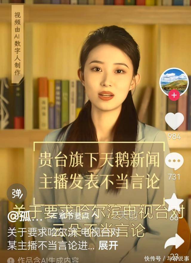 为什么会是这样? 这,耐人寻味。 这位天鹅美女到底上哪里去了? 老刘的疑惑,当说道出了不少网友的同一好奇。 人们好奇的关键点,还在于,这位某广电集团下属的“天鹅新闻”的出镜美女主播,时下,不仅下架了贬损云朵的相关视频,她本人的所有出镜内容竟也悉数消失,踪迹难寻。 此前,她曾公开评论云朵对师父的表态。 她曾就此发出过两问。 她一问听众:云朵这话诚恳吗? 她二问自我:这事讽刺吗? 她接下来,给云朵做出了定论。 她说—— 在最该站出来的时候,她选择了隐身,在风波平息之后,她才开始护师,这不就是我们常说的事后诸葛亮吗? 不是坏,是迟。 不是假,是晚。