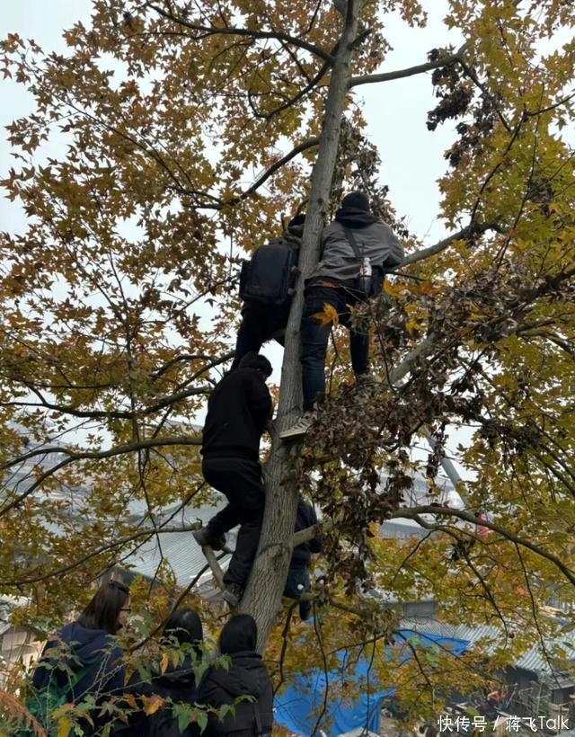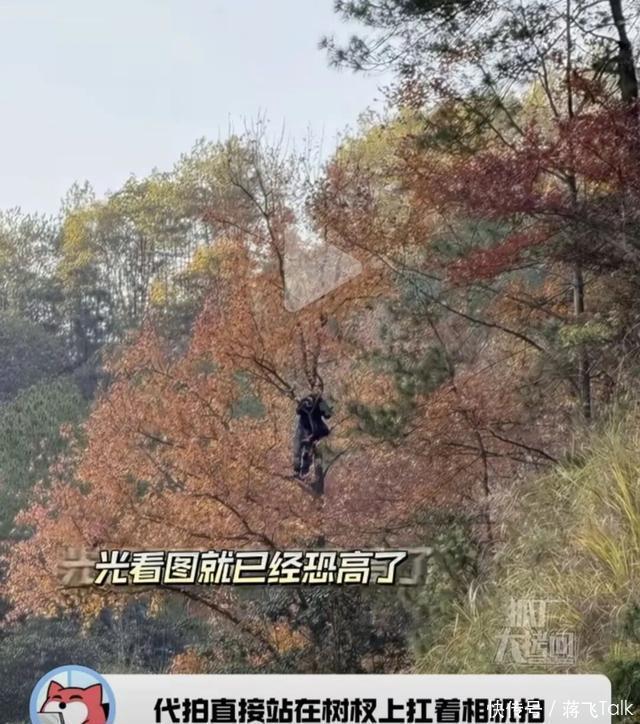 这些代拍为了拍成毅也是拼了,那么高的山爬上去,就已经很厉害了,他们为了能拍得清楚点,还爬上了那么高的树,这树光是看着就已经恐高了,而且最上面的枝丫那么小,感觉随时都可能会断掉,但是他们都不怕的,那么高的树真的是说爬就爬啊!