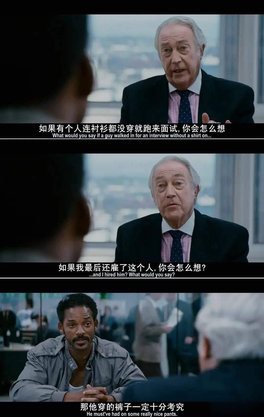 当看到克里斯・加德纳在面试股票经纪人的场景时,我彻底被威尔・史密斯的演技征服了。